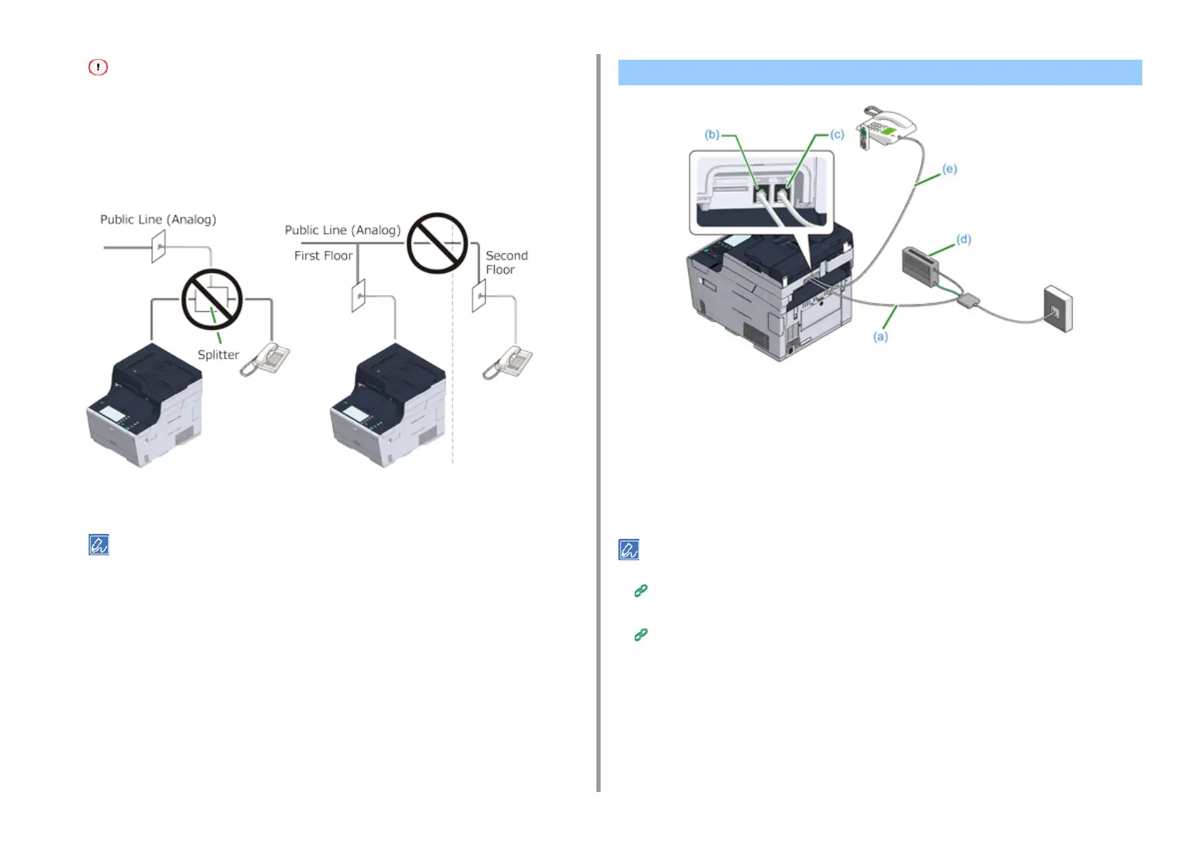 • Do not connect the telephone to the machine in parallel. If you connect the telephone to the machine in parallel,