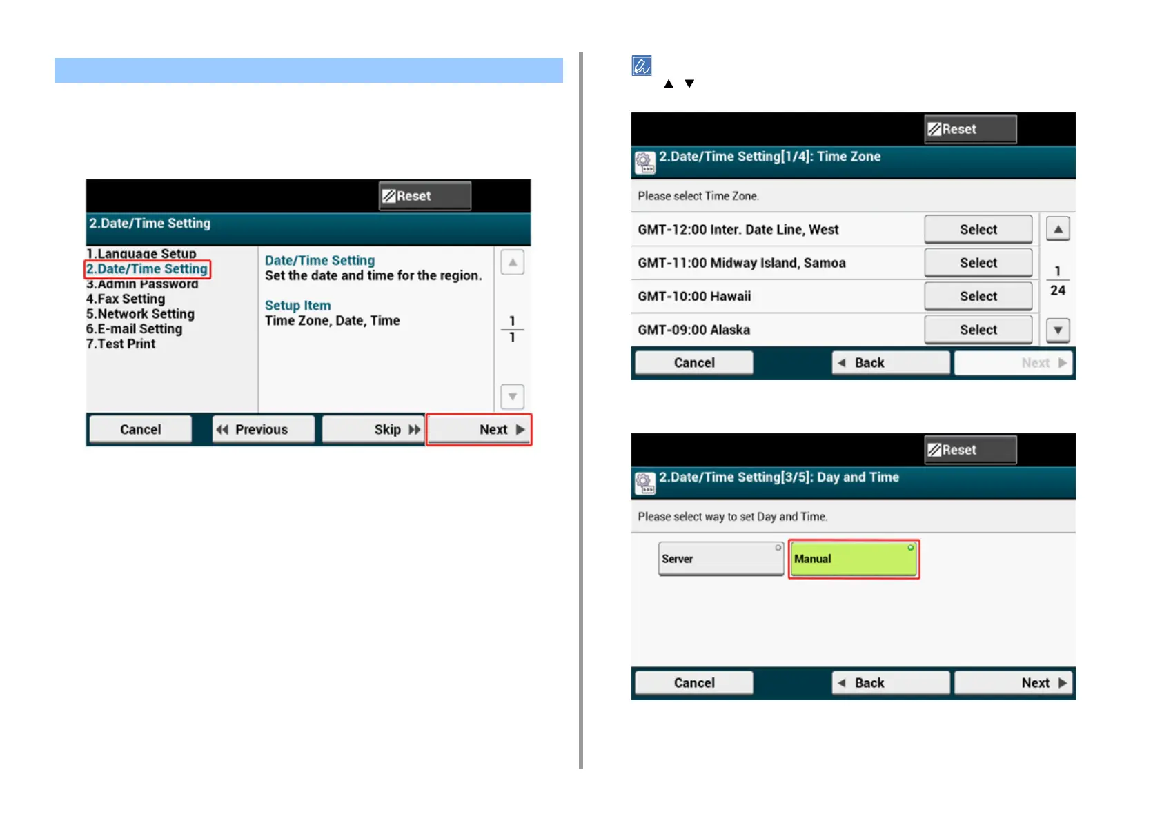 Check that the [2. Date/Time Setting] screen is displayed, and then press
