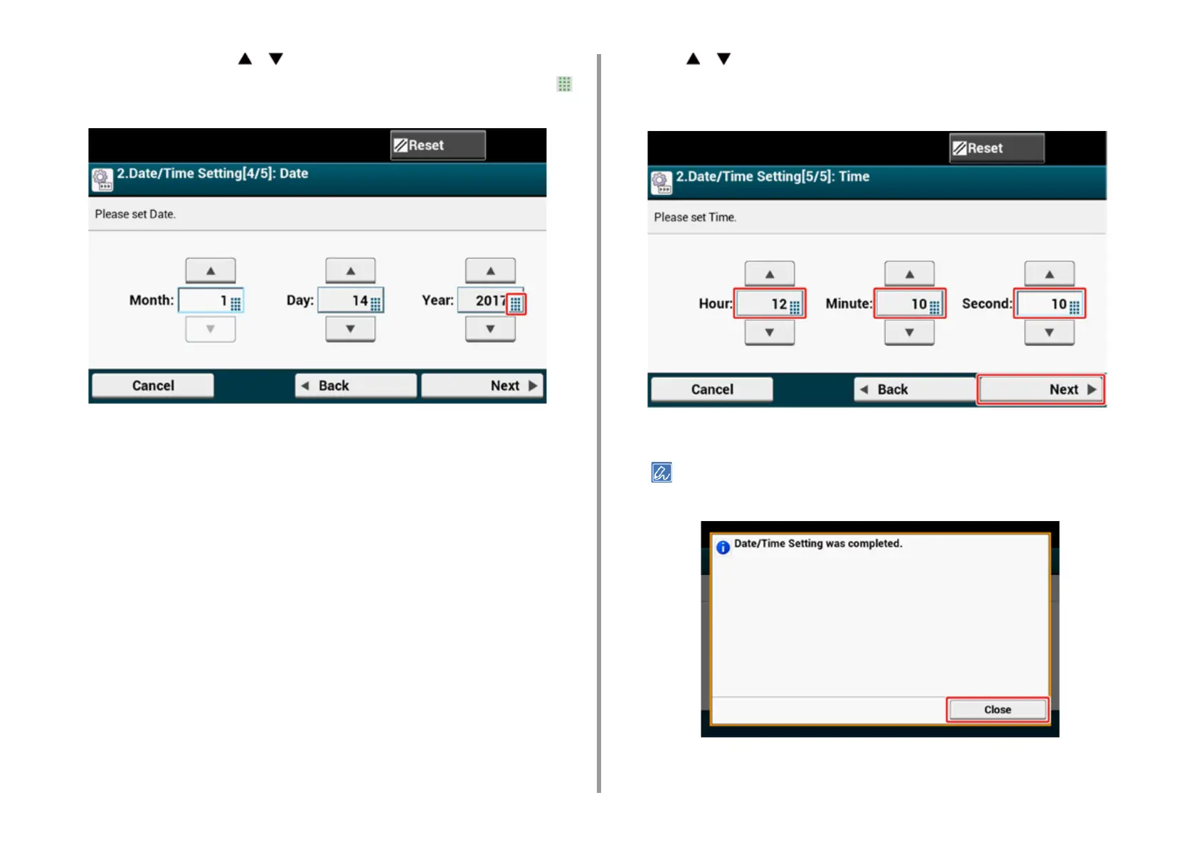 time in the same manner as the date entry, and then press [Next].