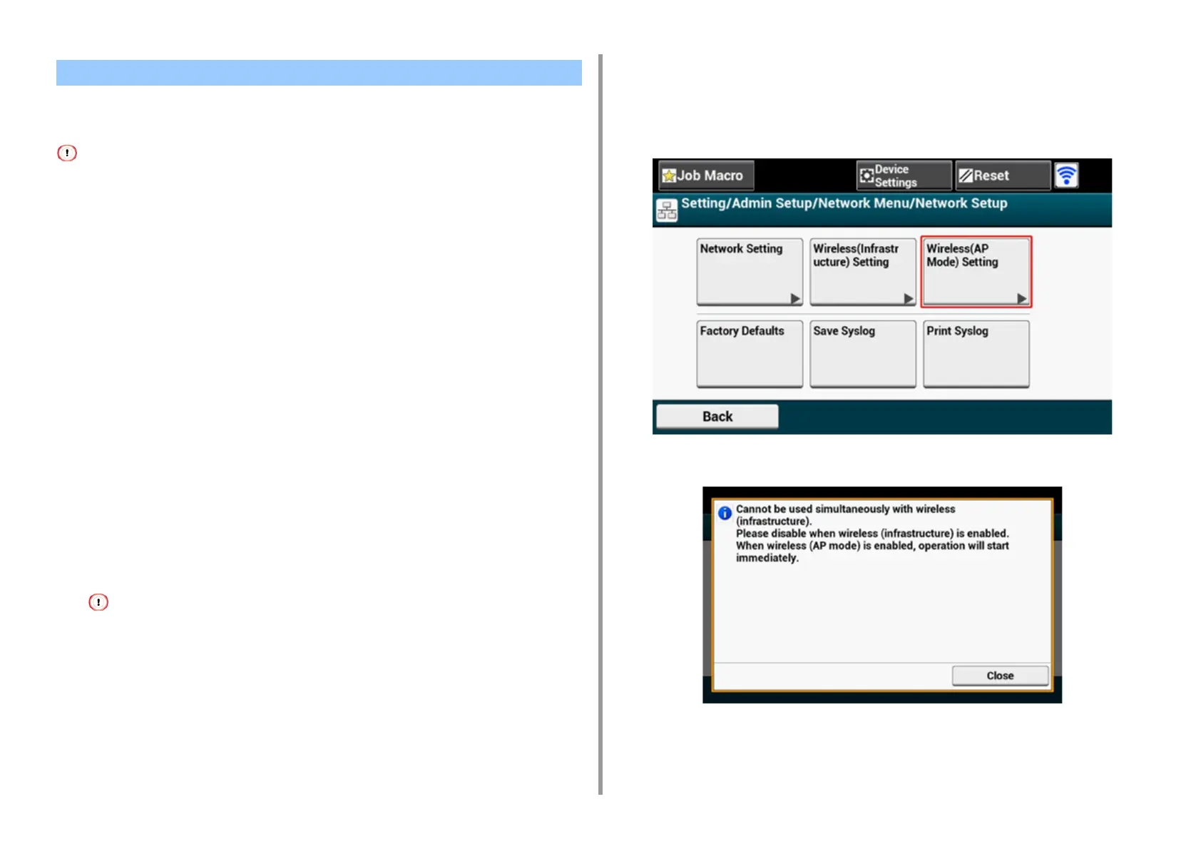 • Up to four devices can be connected to the machine via the wireless LAN (AP mode). The fifth device will be rejected.