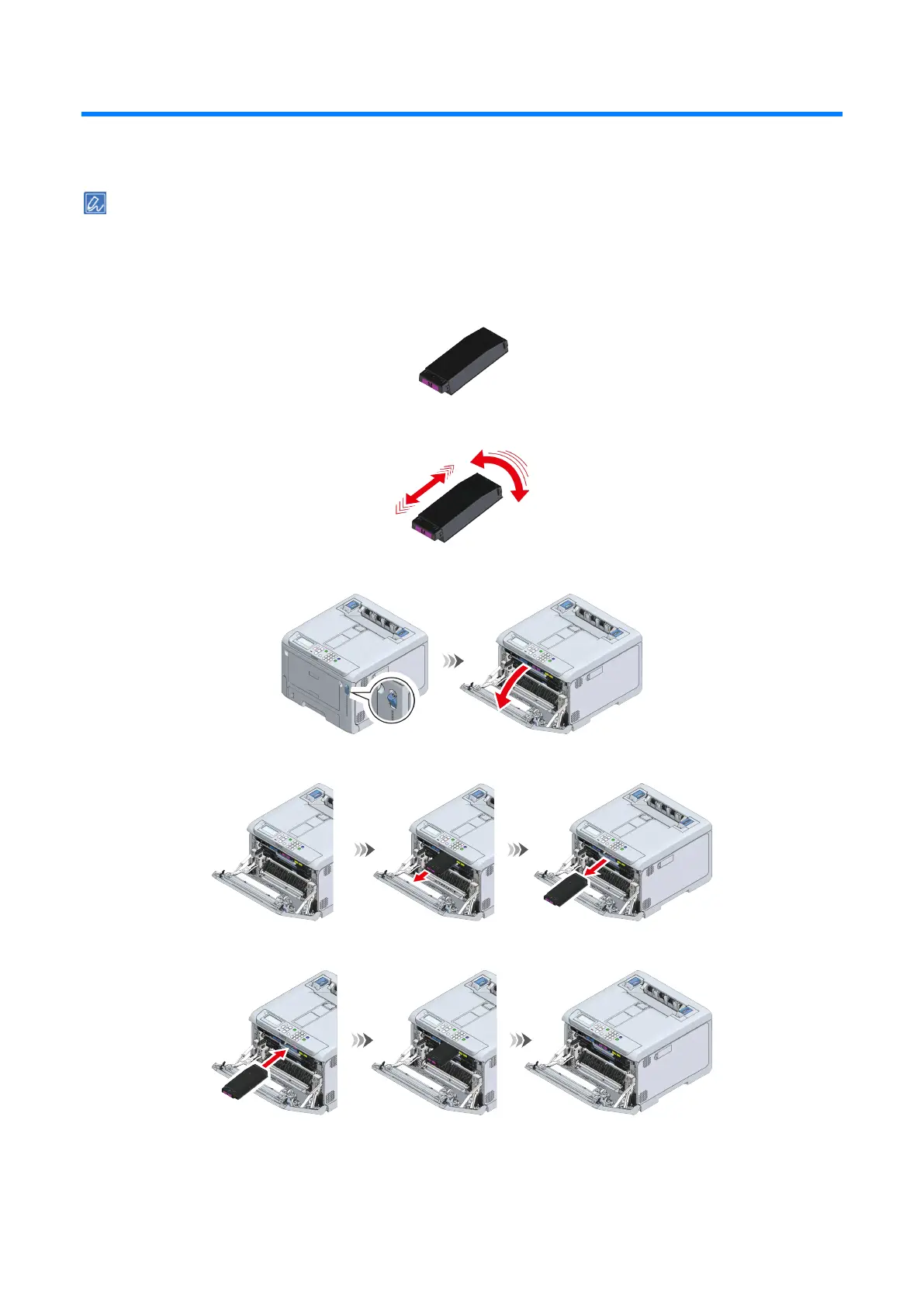 This section takes the toner cartridge (M) as an example. The toner cartridge (C/Y) can be replaced by the