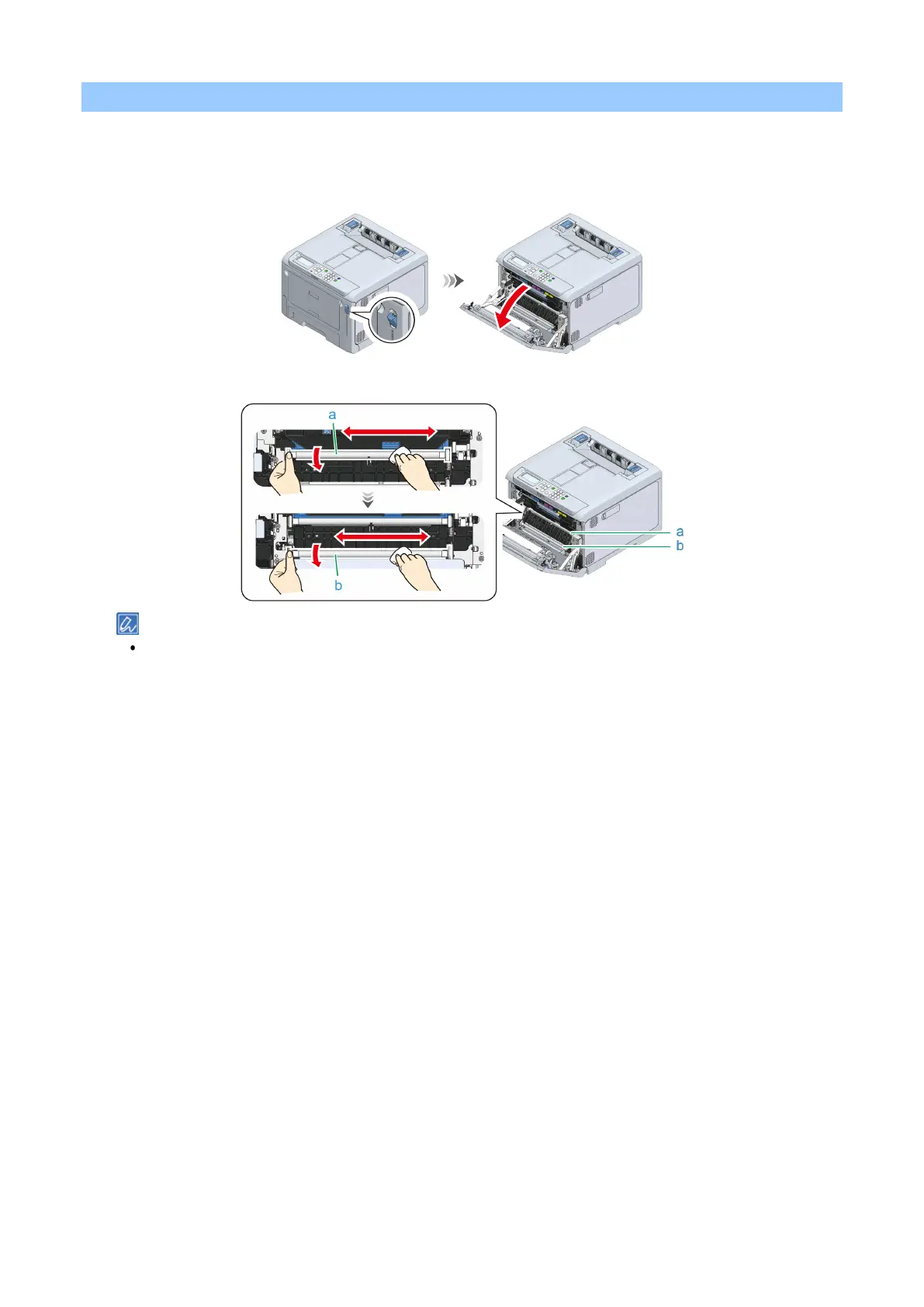 Wipe the metal parts (a) and (b) of the resist roller visible on the front with soft tissue paper.