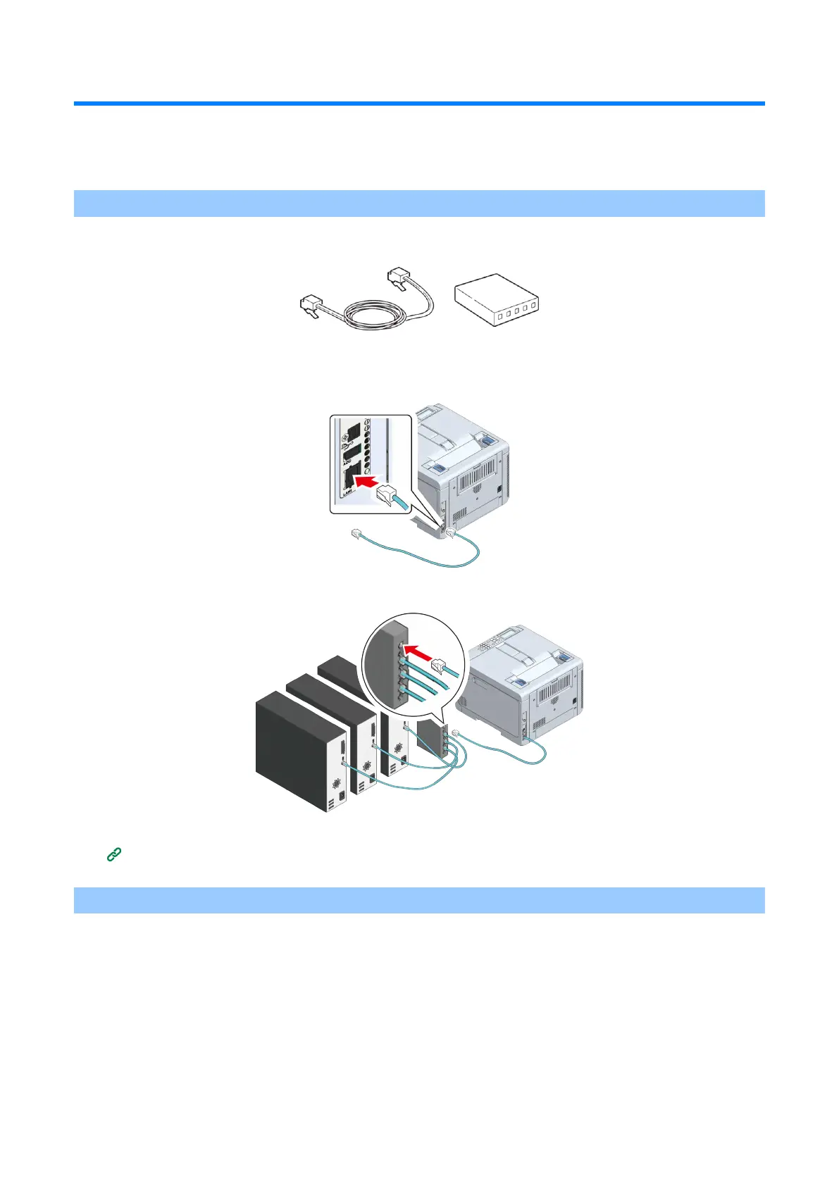 Connect this machine and a PC with a LAN cable to print. Connect the LAN cable, and set the IP address and