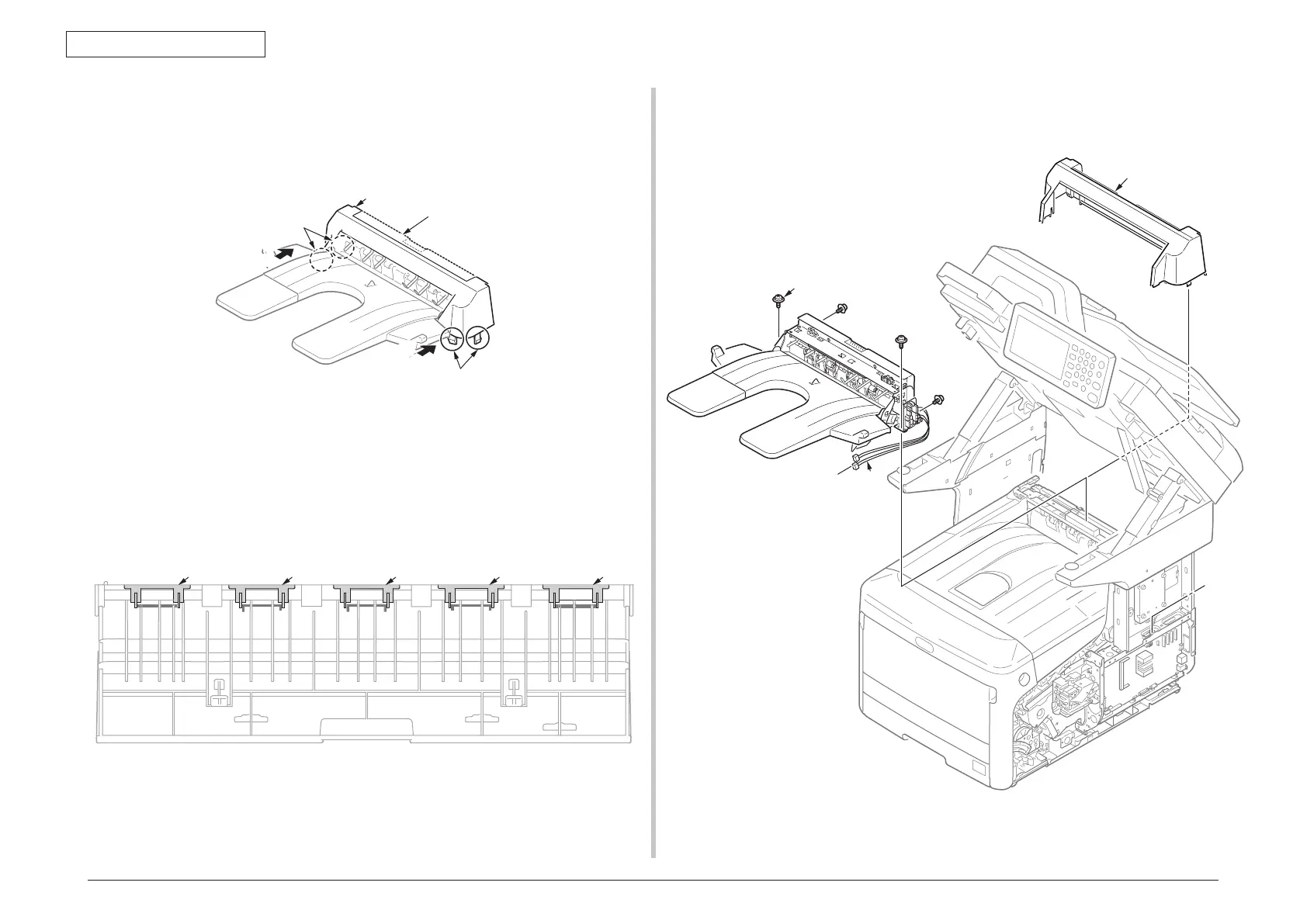 (2) Open the Guide-2bin-rear and remove the four claws and 2bin-Cover