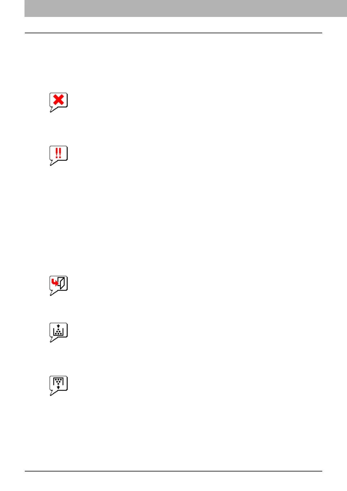 This icon indicates a non-recommended toner cartridge is used and that the equipment has stopped printing.