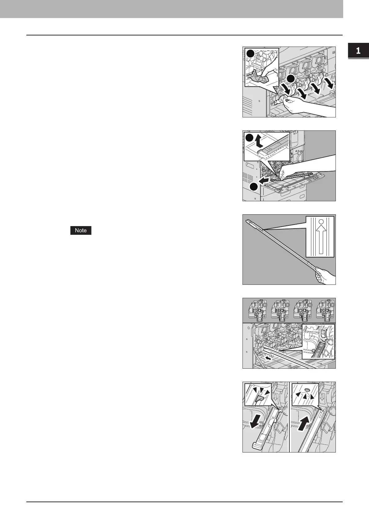 cartridges until they are positioned as shown in (2).