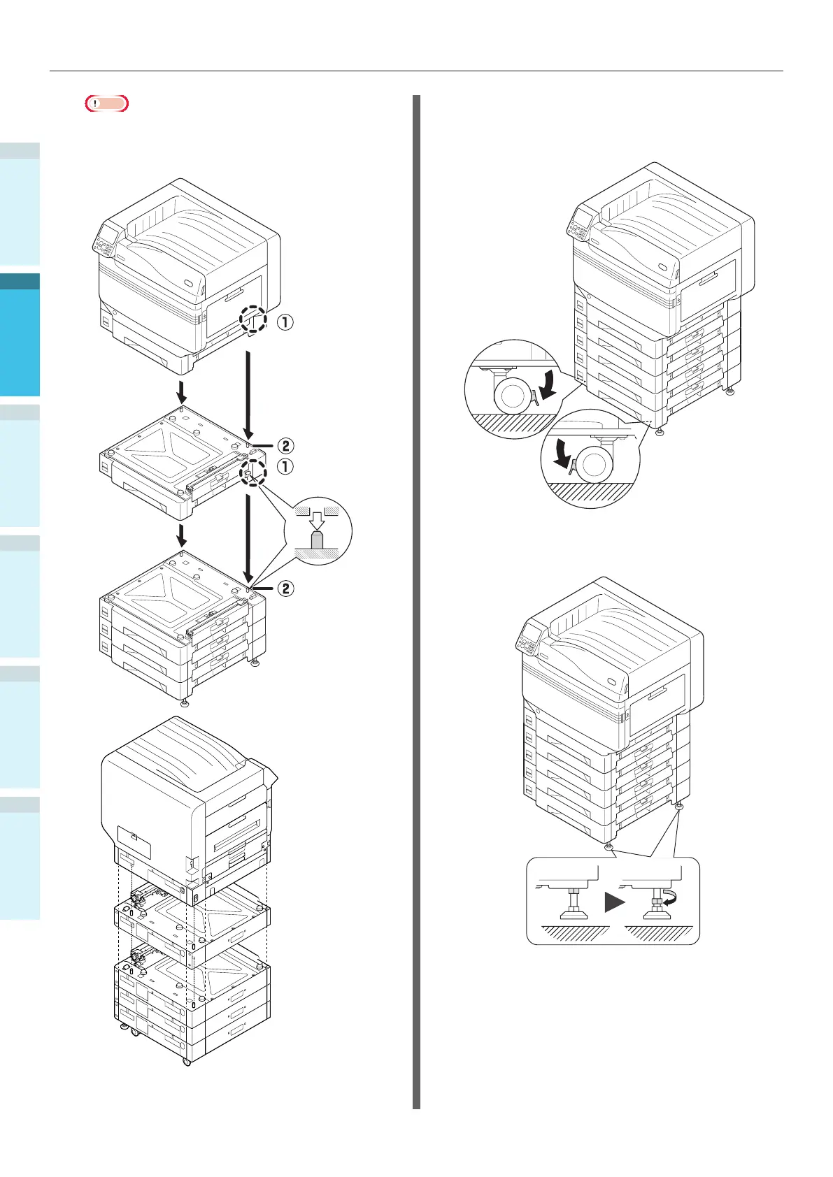 unit with casters, adjust the caster locks (x2) and feet (x2).