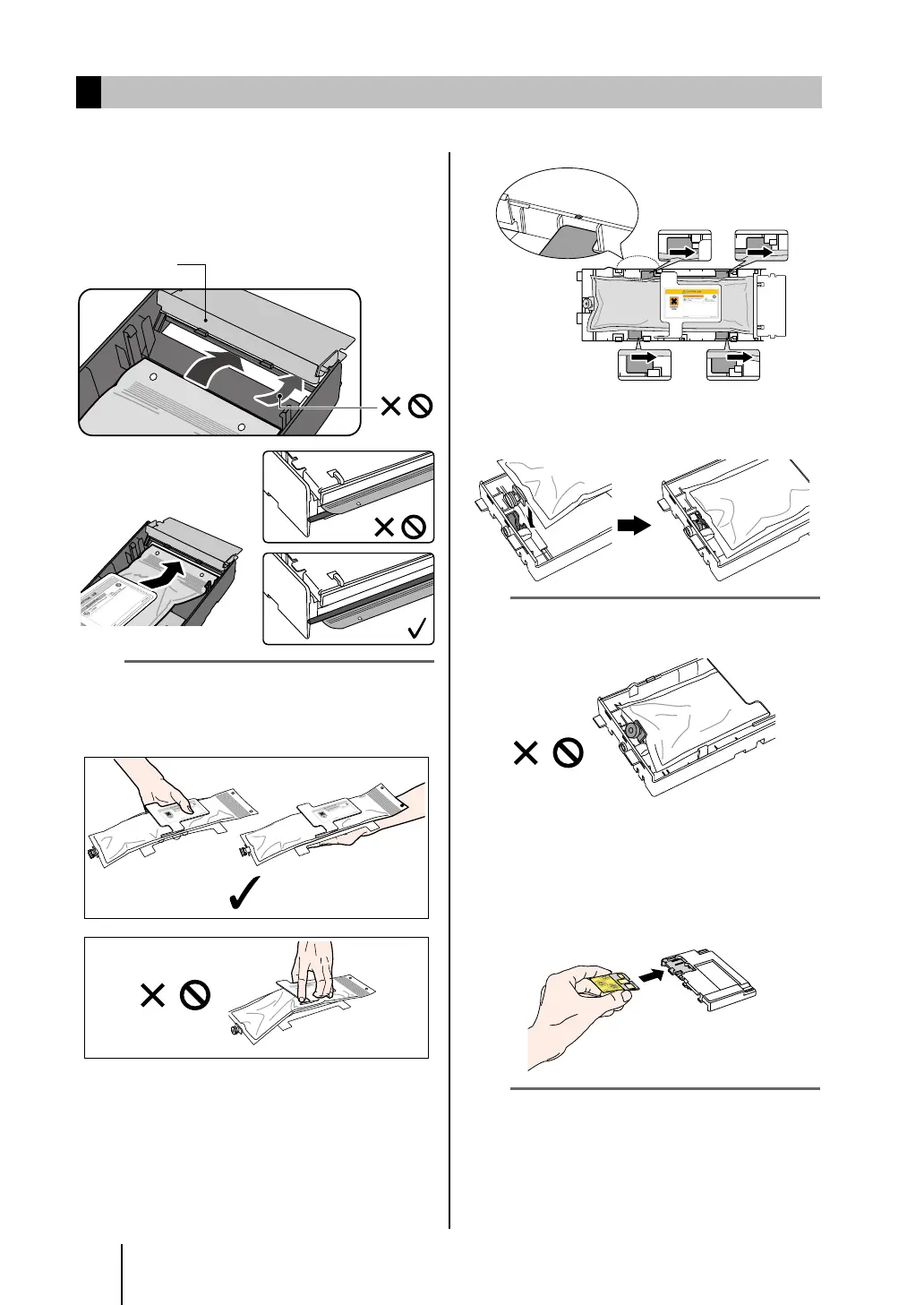 - Não instale o cartucho de tinta com o tubo inclinado.