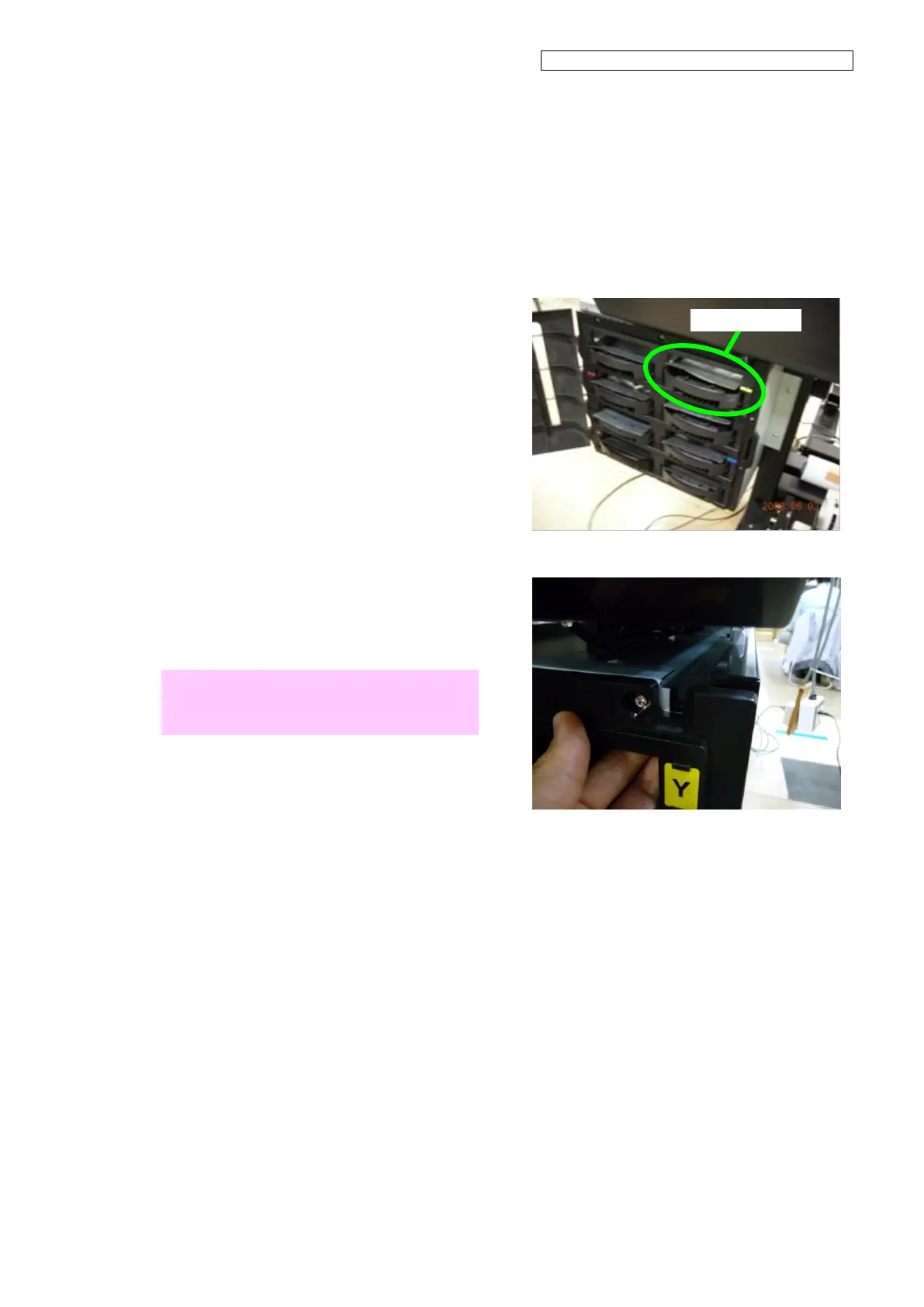3. Place your hand inside the ink tray Y slot,
