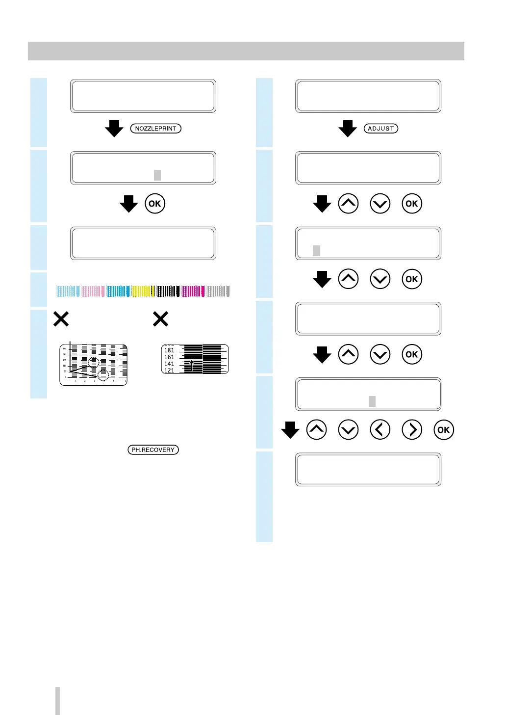 24番ノズルと133番ノズルが抜けている例 159番ノズルにインク吐出方向の曲がりがある