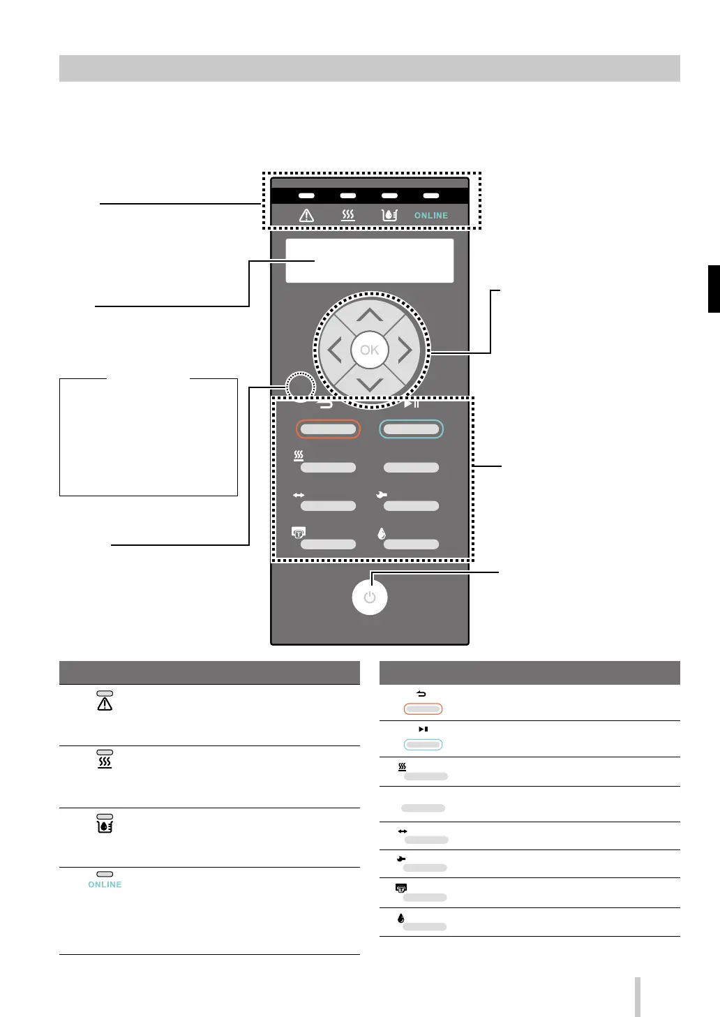 The buttons, LEDs and LCD are placed on the printer's operation panel as shown below. In addition, the operation