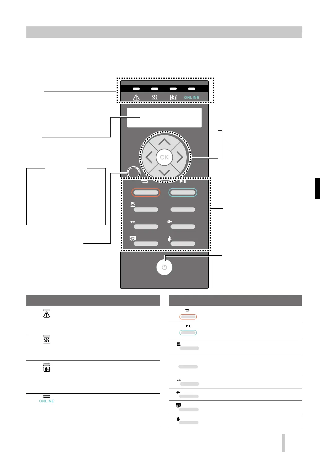 I tasti, i LED e l'LCD si trovano sul pannello operatore della stampante come illustrato sotto. Inoltre, il pannello opera-