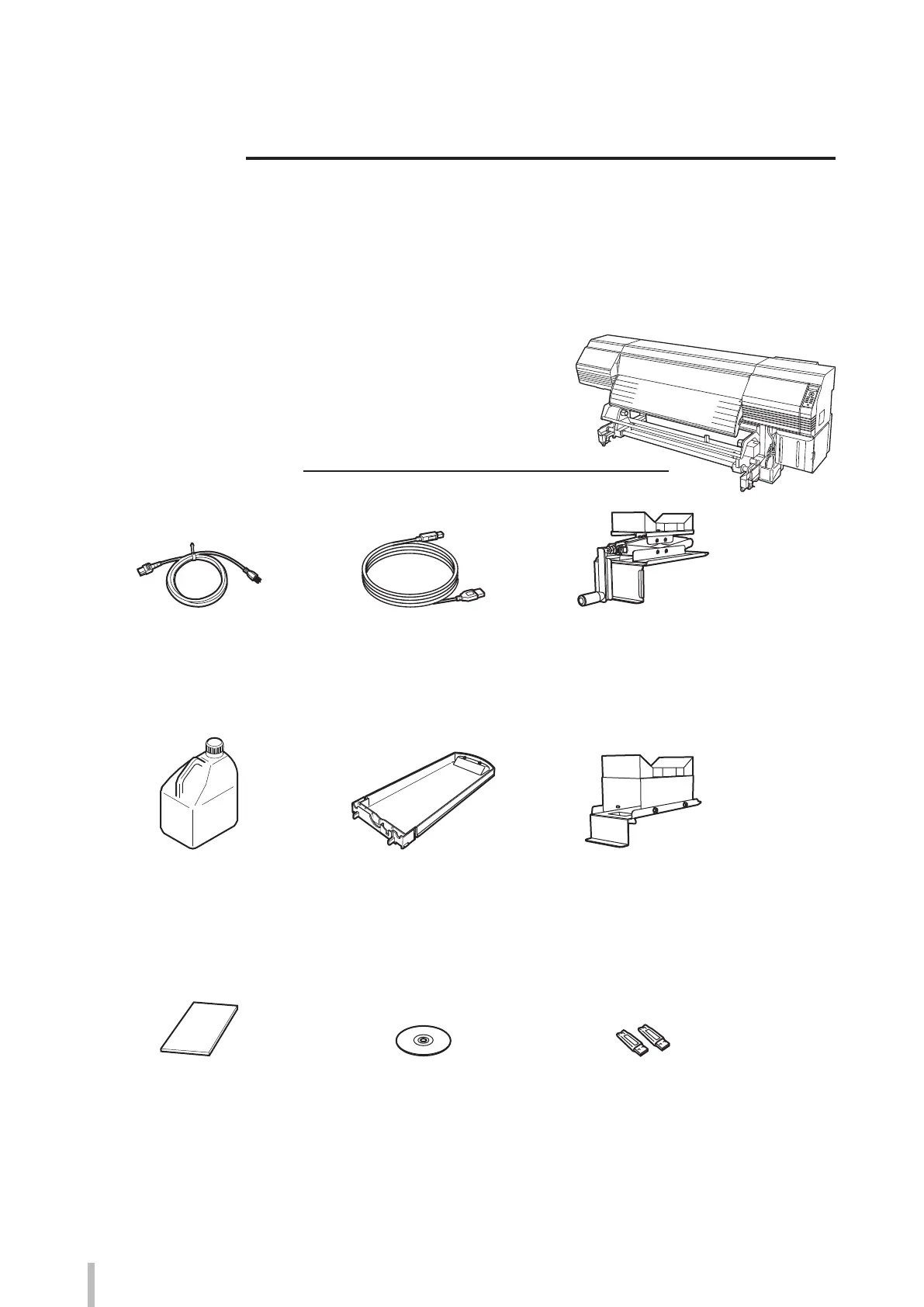 Various components, including optional parts, are delivered with the printer. They must be attached to the printer
