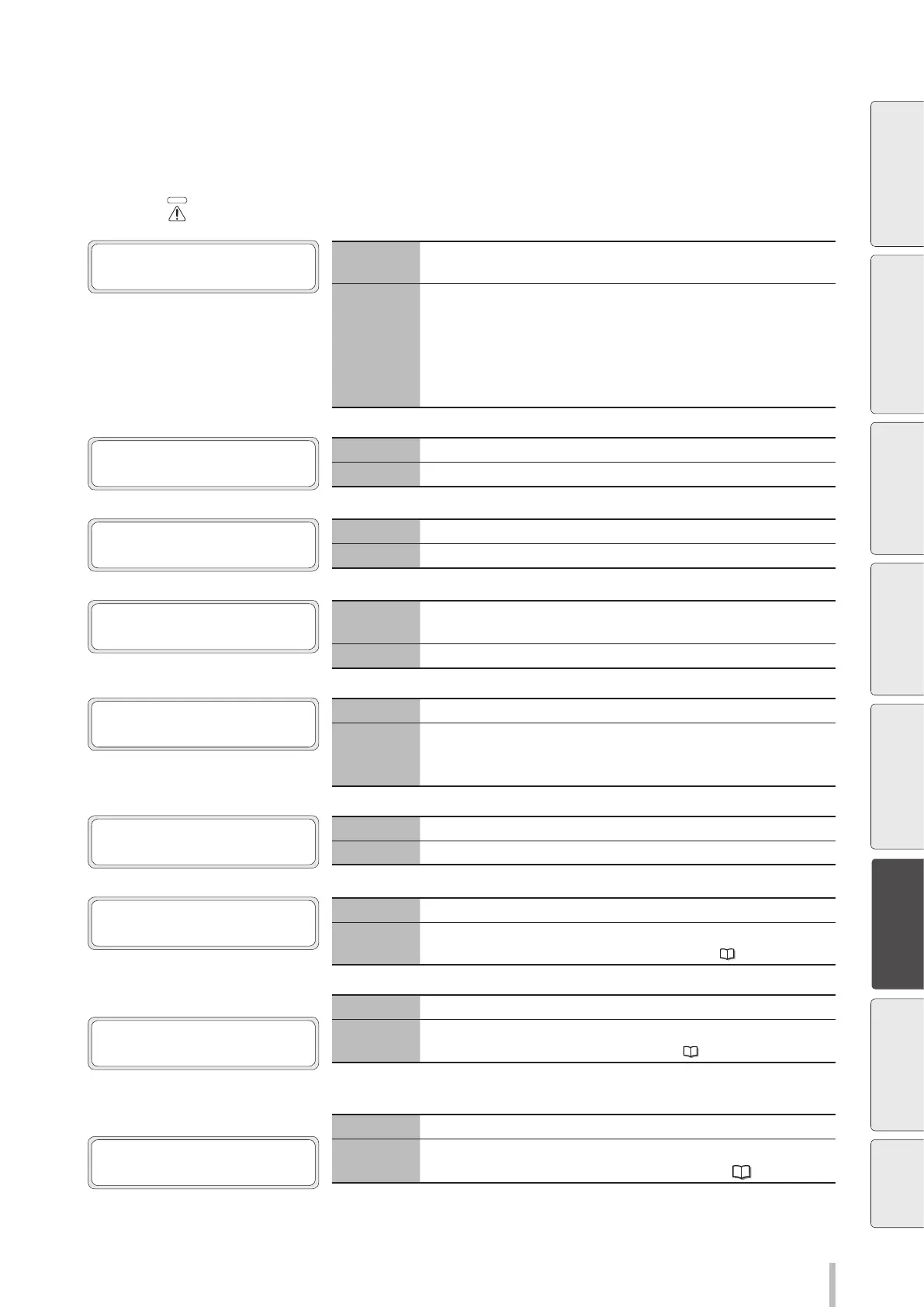 ERROR LED ashing. They are warning messages. In such cases, follow the instructions in the Action rows.