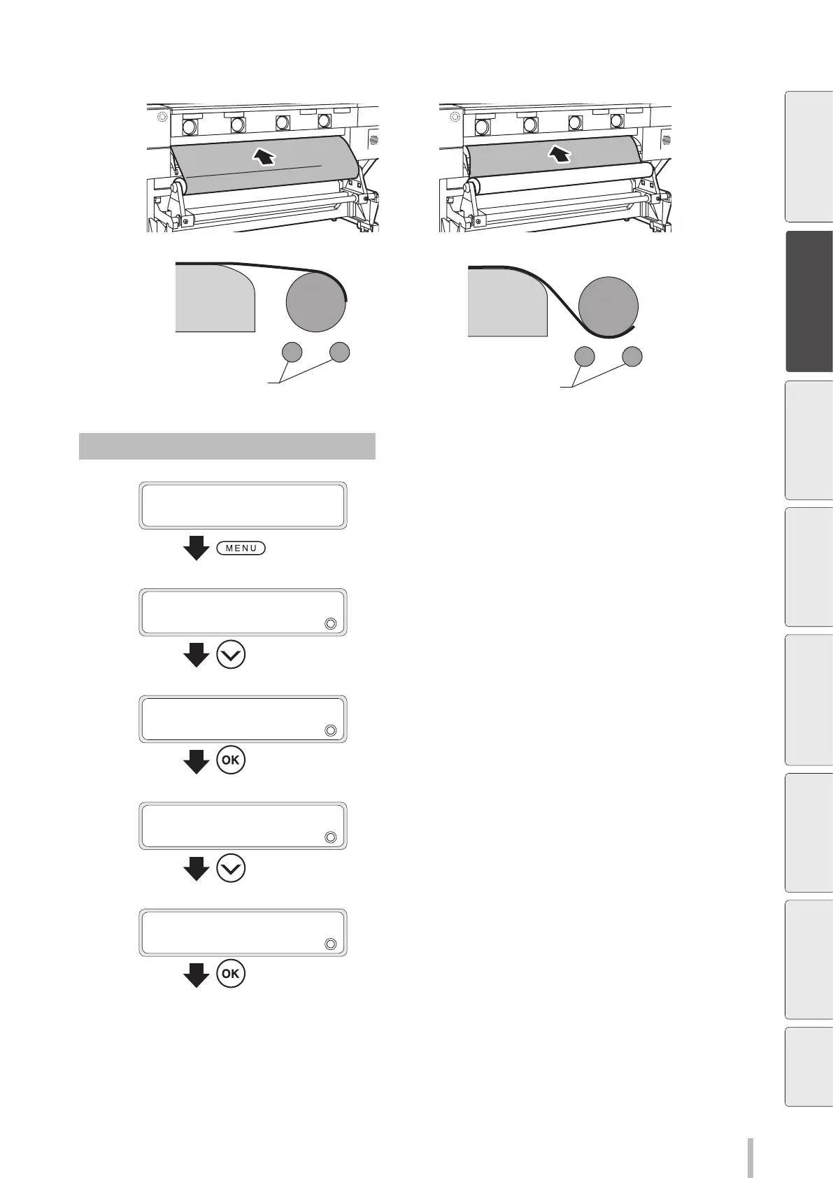 at the outer side of the roll>