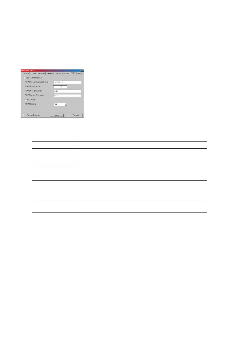 POP3 Interval Set interval to retrieve E-Mail(s) from POP3 server. Set