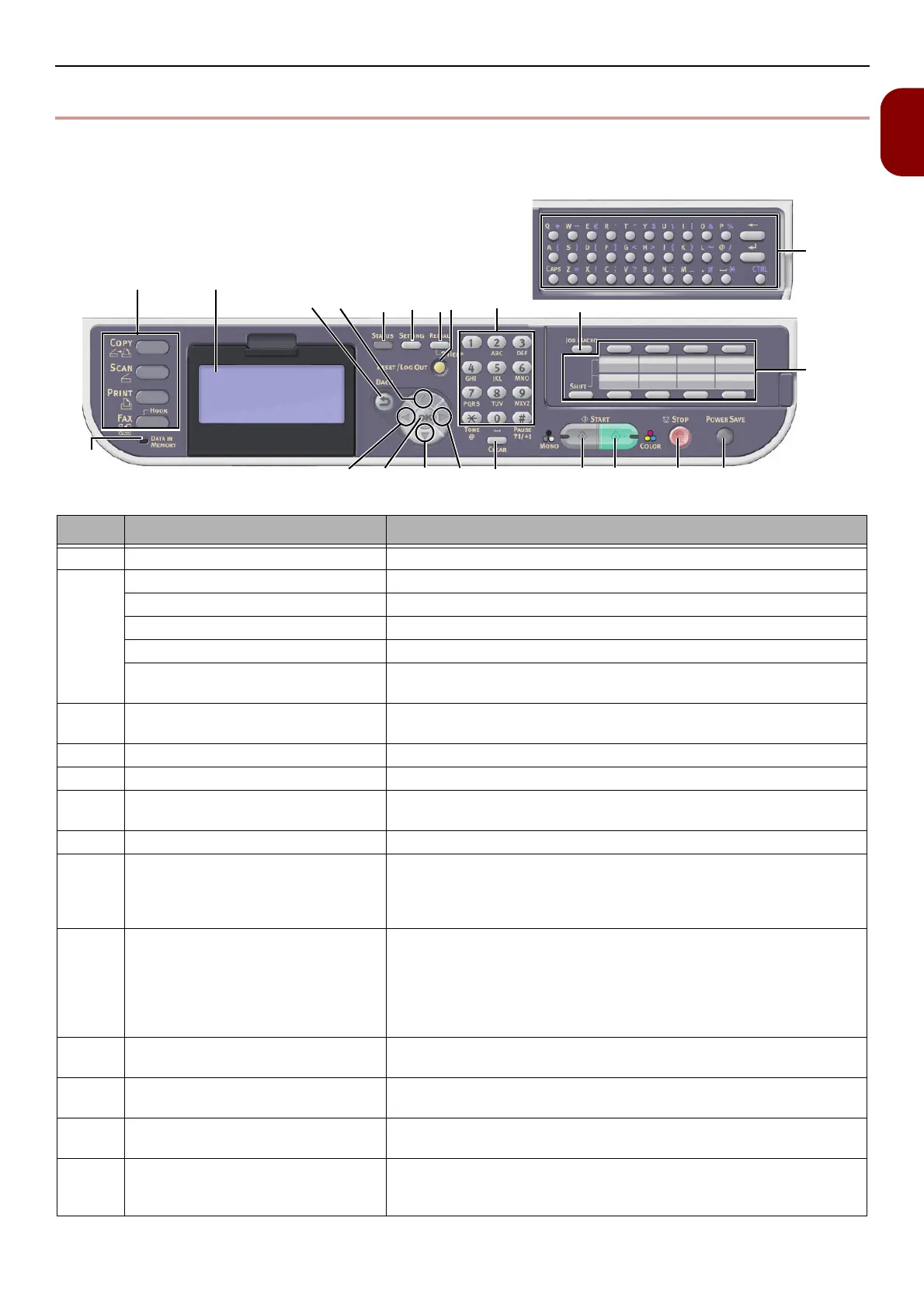 This section explains the names and functions of components on the operator panel and how to enter
