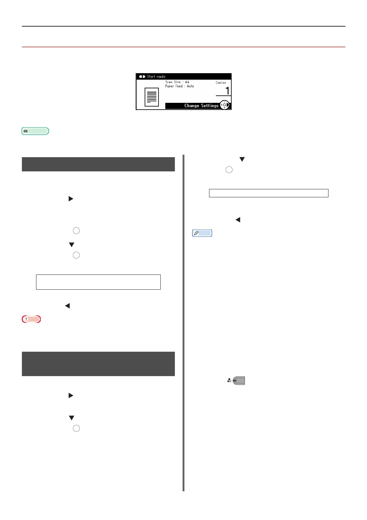 z The changes made in the [Change Settings] menu on the copy standby screen are temporary. You can change the default