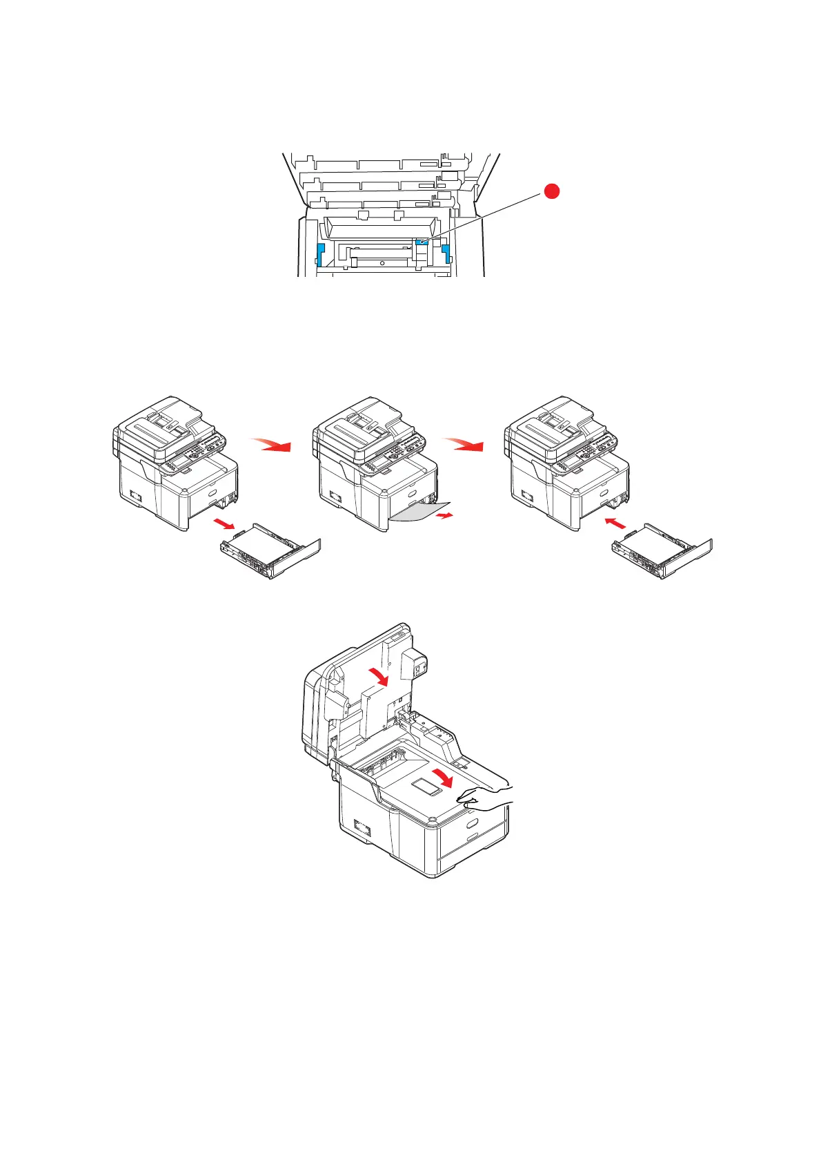 gripped by the fuser. In this case raise the top cover, reach around and press