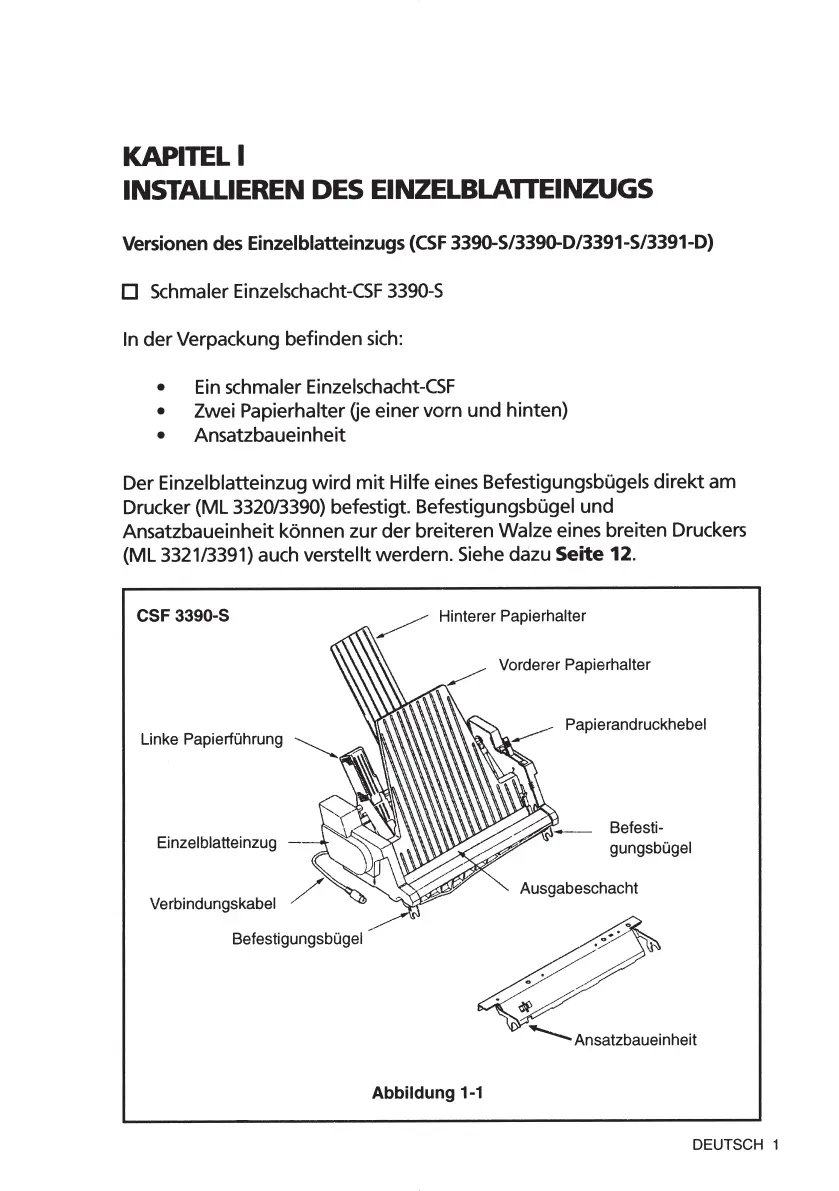 INSTALLIEREN DES EINZELBLATTEINZUGS