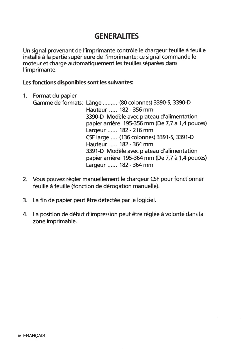 Un signal provenant de l'imprimante contrôle le chargeur feuille à feuille