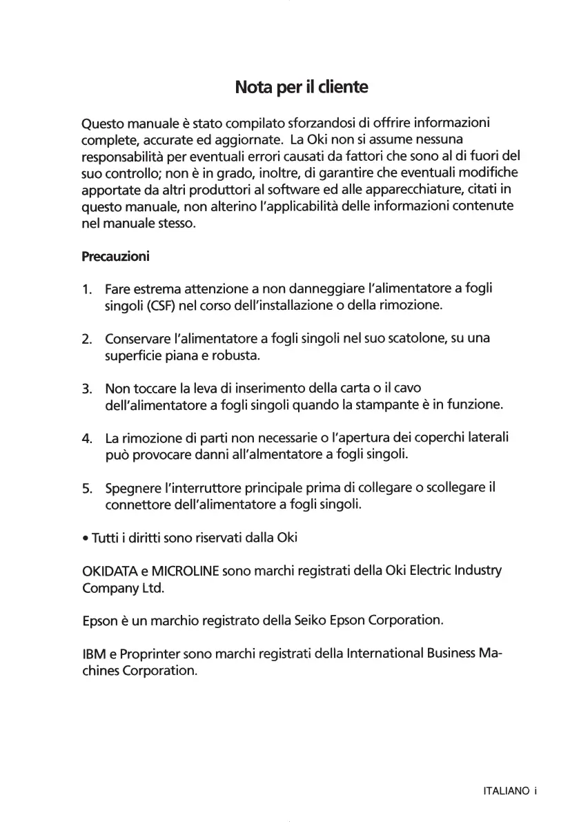 estrema attenzione a non danneggiare l'alimentatore a fogli