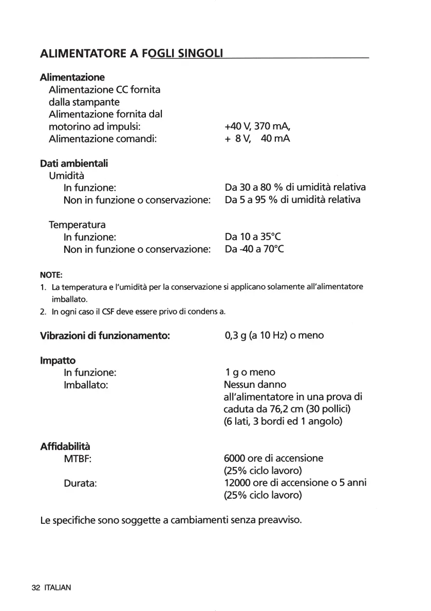 specifiche sono soggette a cambiamenti senza preavviso.