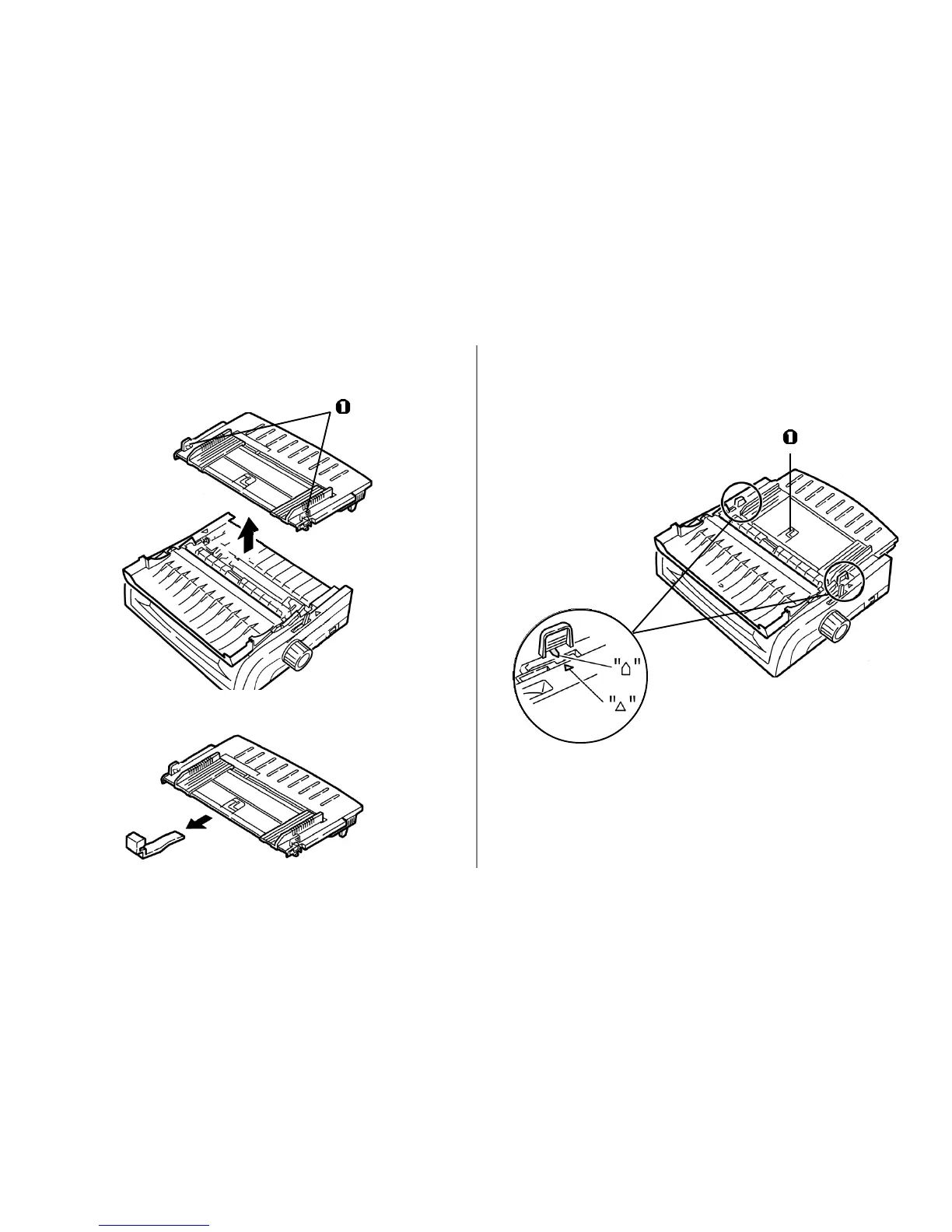 4 Use the tabs (1) to lift and remove the sheet guide, then