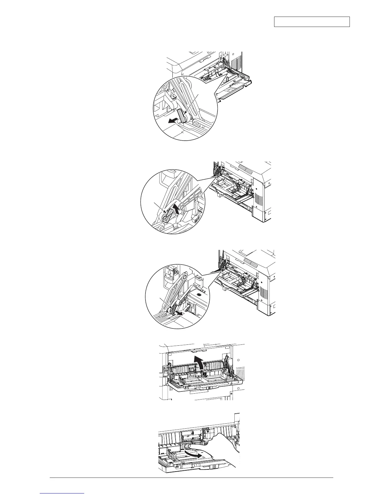 (5) Just as in (3) above, move the lever on the left of the Multipurpose Tray at the joint of the