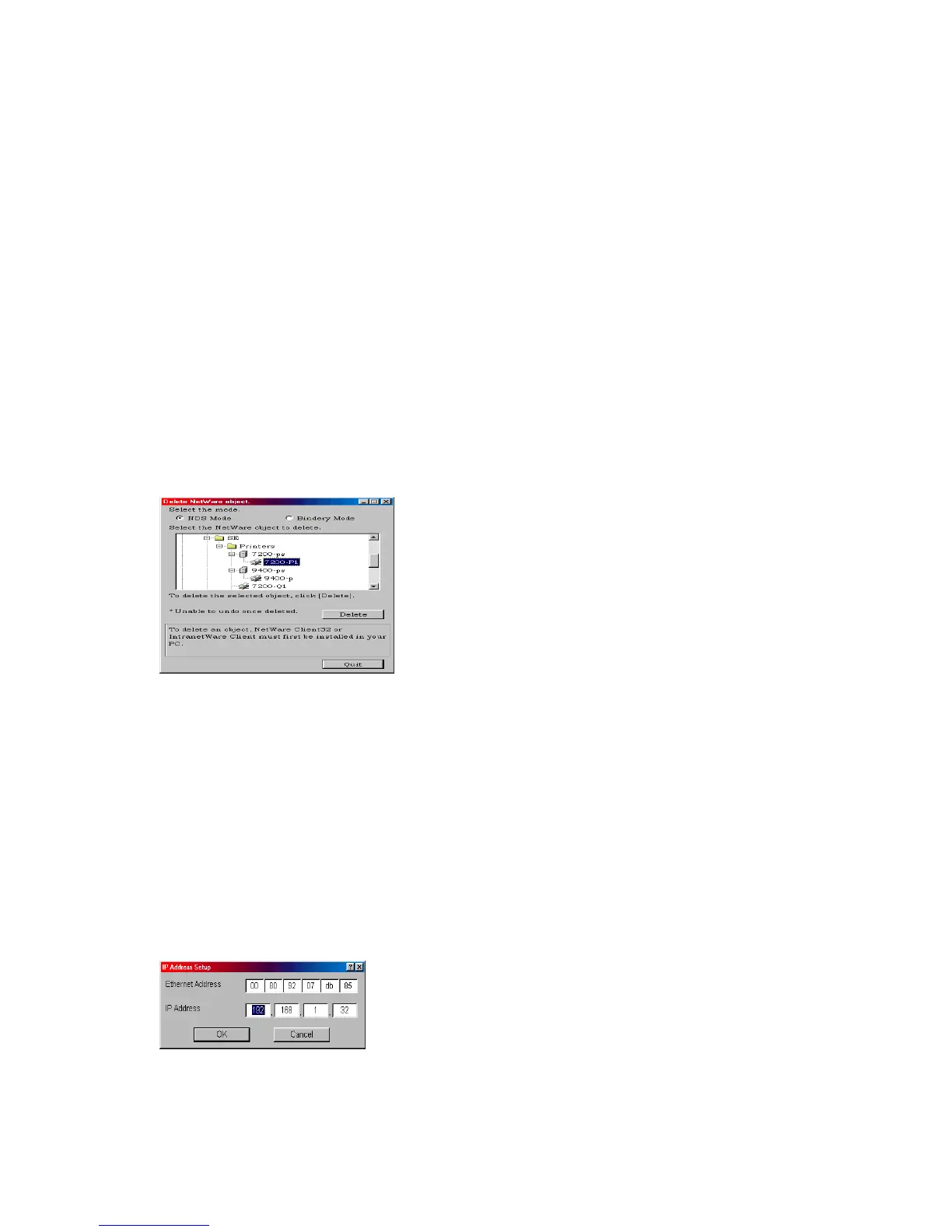 1. Select [Delete NetWare Object] from [Setup] menu.