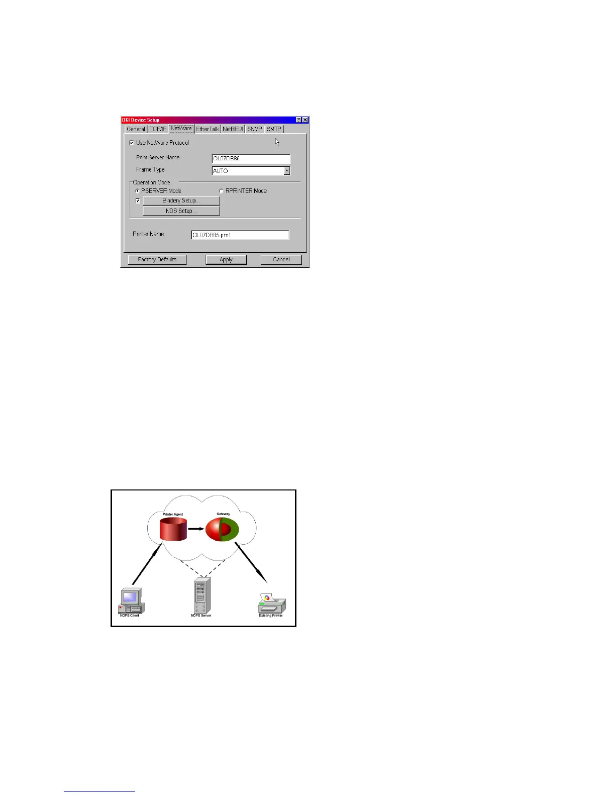 OKI provide a gateway for NDPS. Gateways allow NDPS clients to send