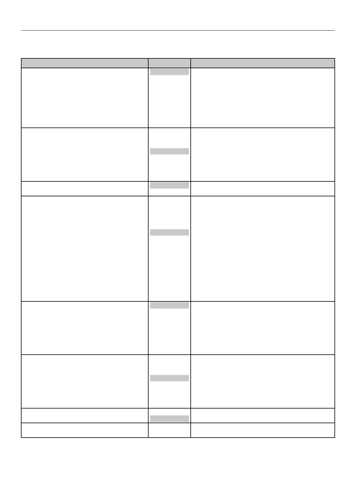 Shaded areas are factory-set values.