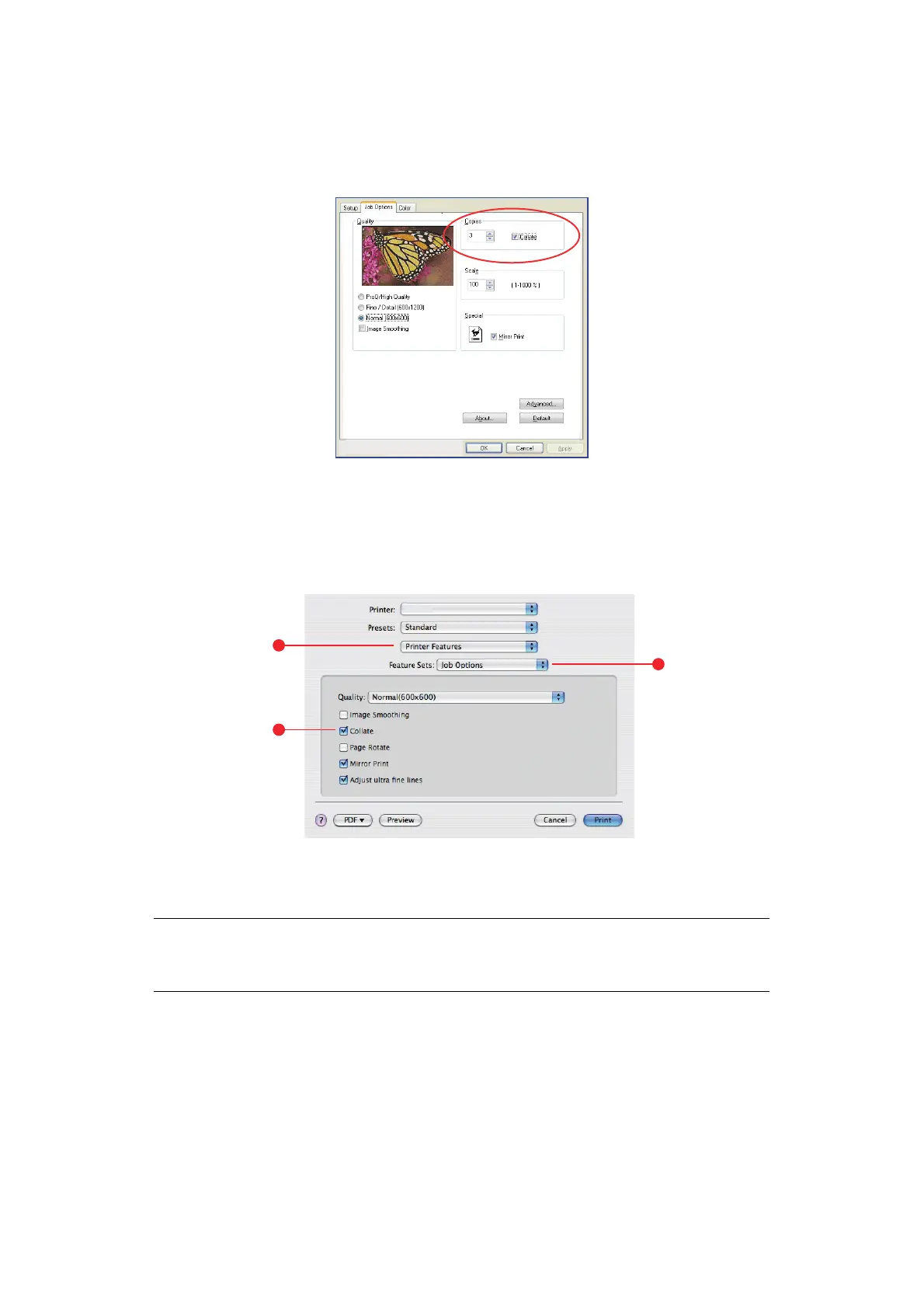 3. Select the Collate checkbox (3) to enable printer collate.