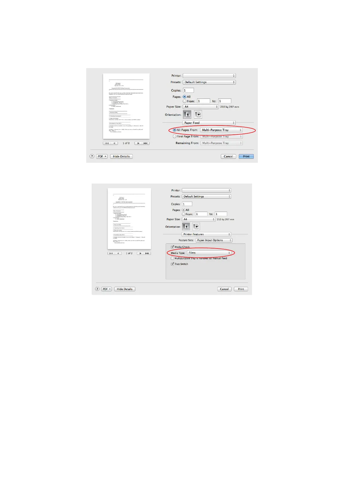 2. Move to the Printer Features window, select the Films from the Media Type