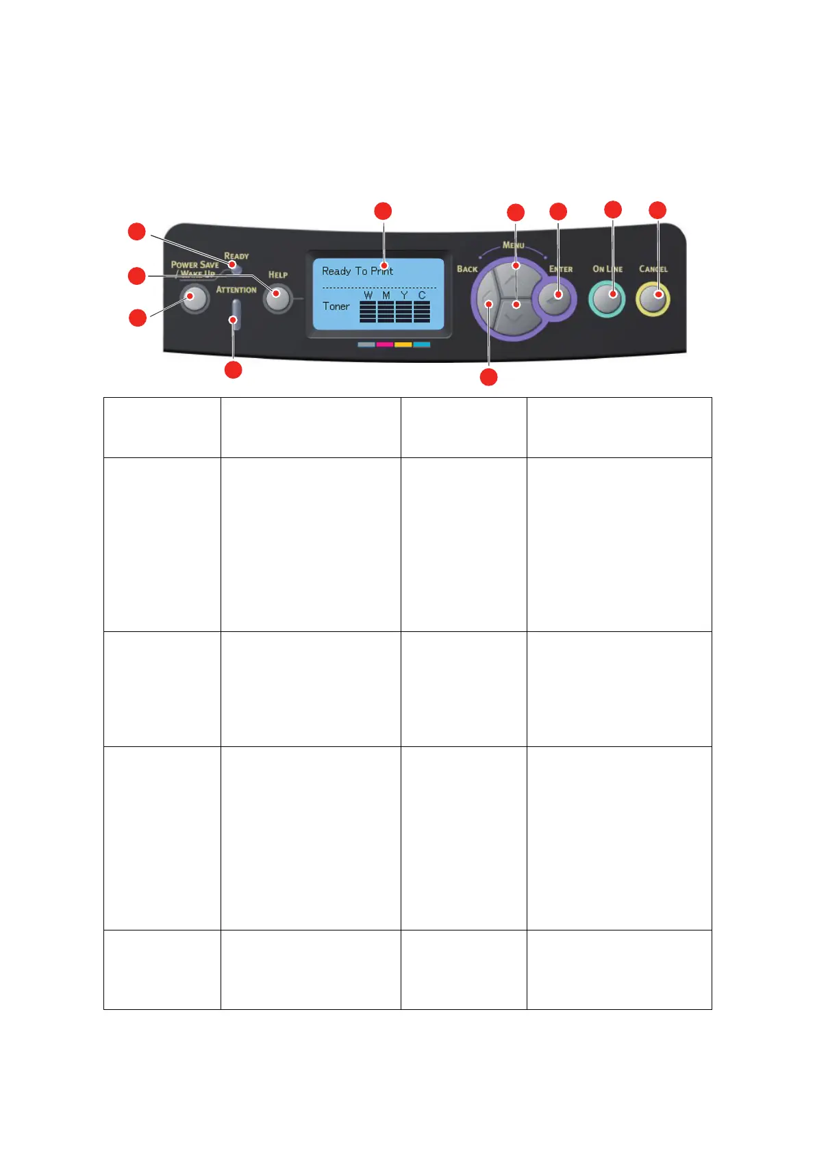 This section lists the menus accessed via the controls on the printer’s operator panel and