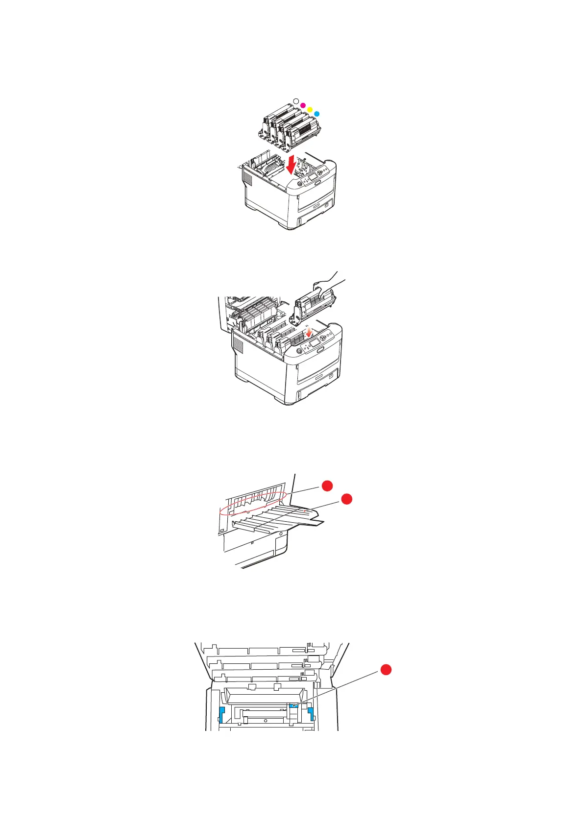 8. Starting with the white image drum unit nearest the fuser, replace the four image