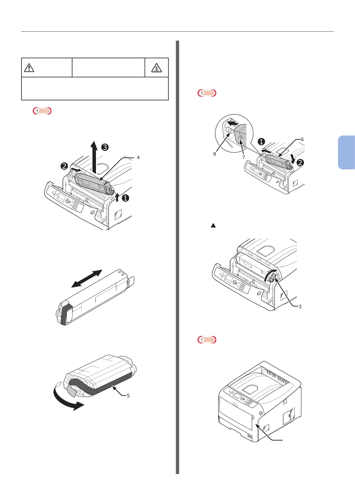 4 Lift the toner cartridge (4) from the right