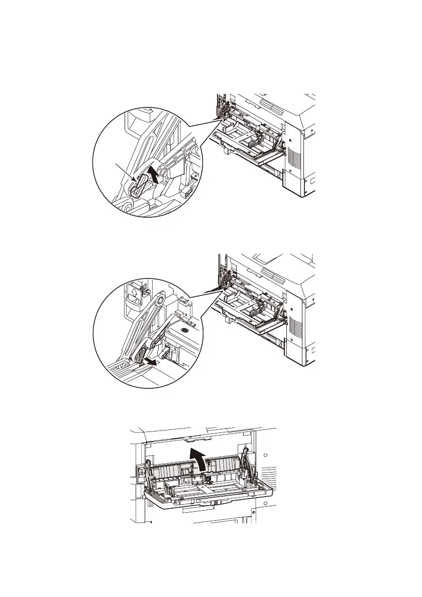 6. Lift the multi-purpose tray slightly with the left hand, and