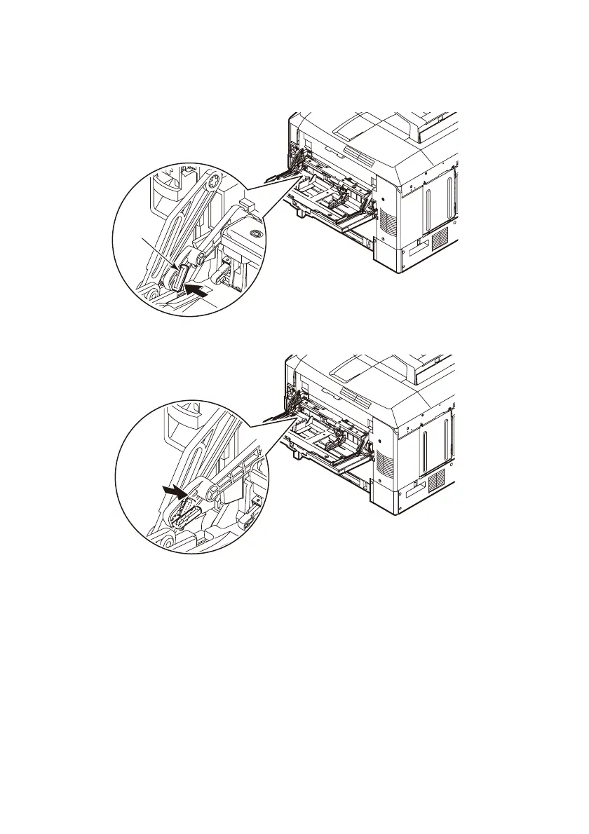 14. Lift the left side of the multi-purpose tray slightly, and fit the