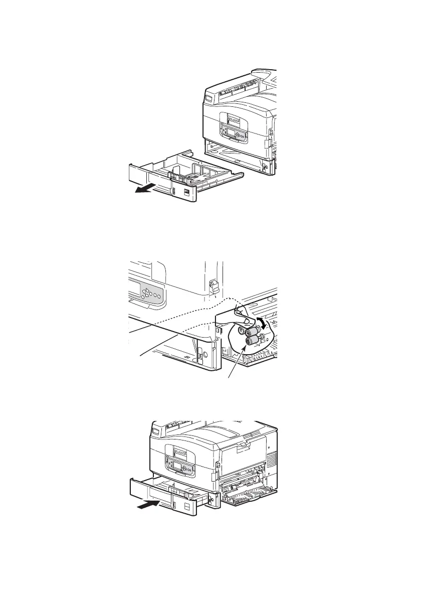 4. Gaining access through the gap left by Tray 1, wipe the 3