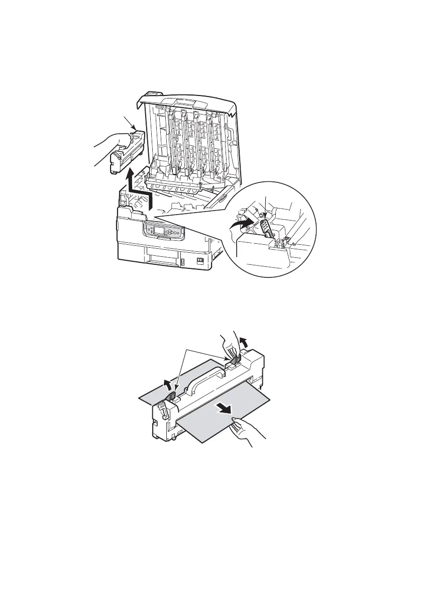 5. Pull up the jam release levers (5) and remove the jammed