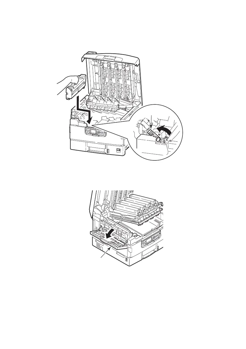 6. Carefully replace the fuser unit into the printer and turn the