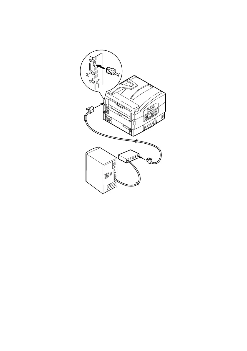 3. Connect an Ethernet cable between the printer and an