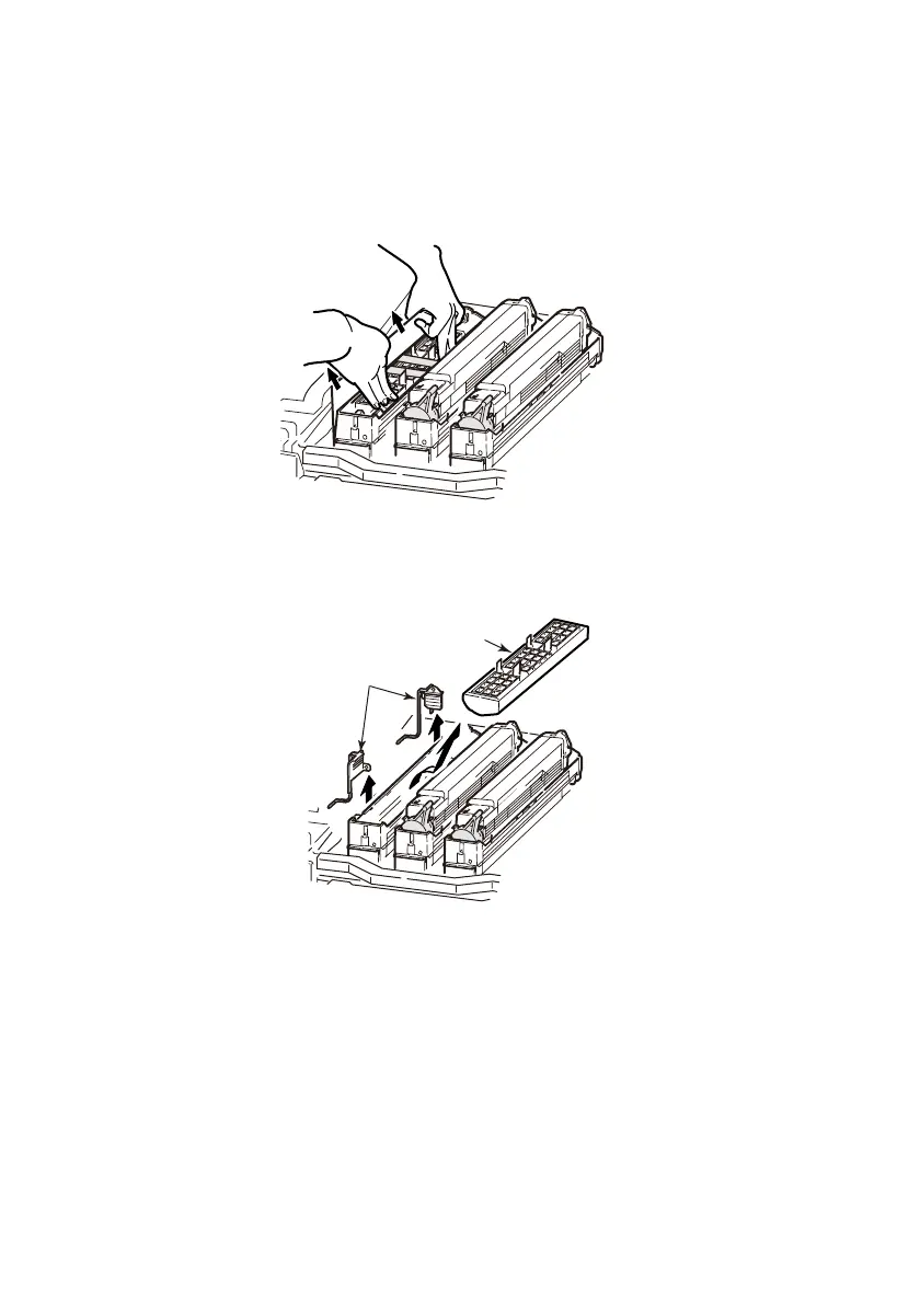 6. Remove the stoppers (2) (orange, eight pieces), toner cover