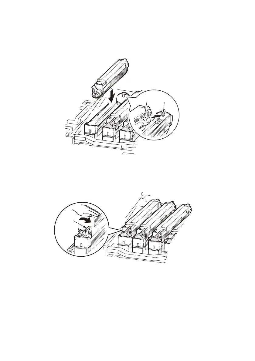 the hole (5) of the toner cartridge on the protrusion (6) of