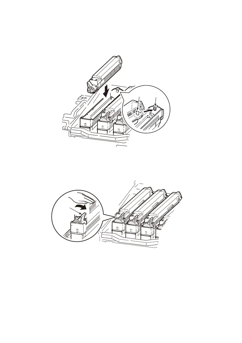 10. Pressing gently down the toner cartridge to ensure that it is