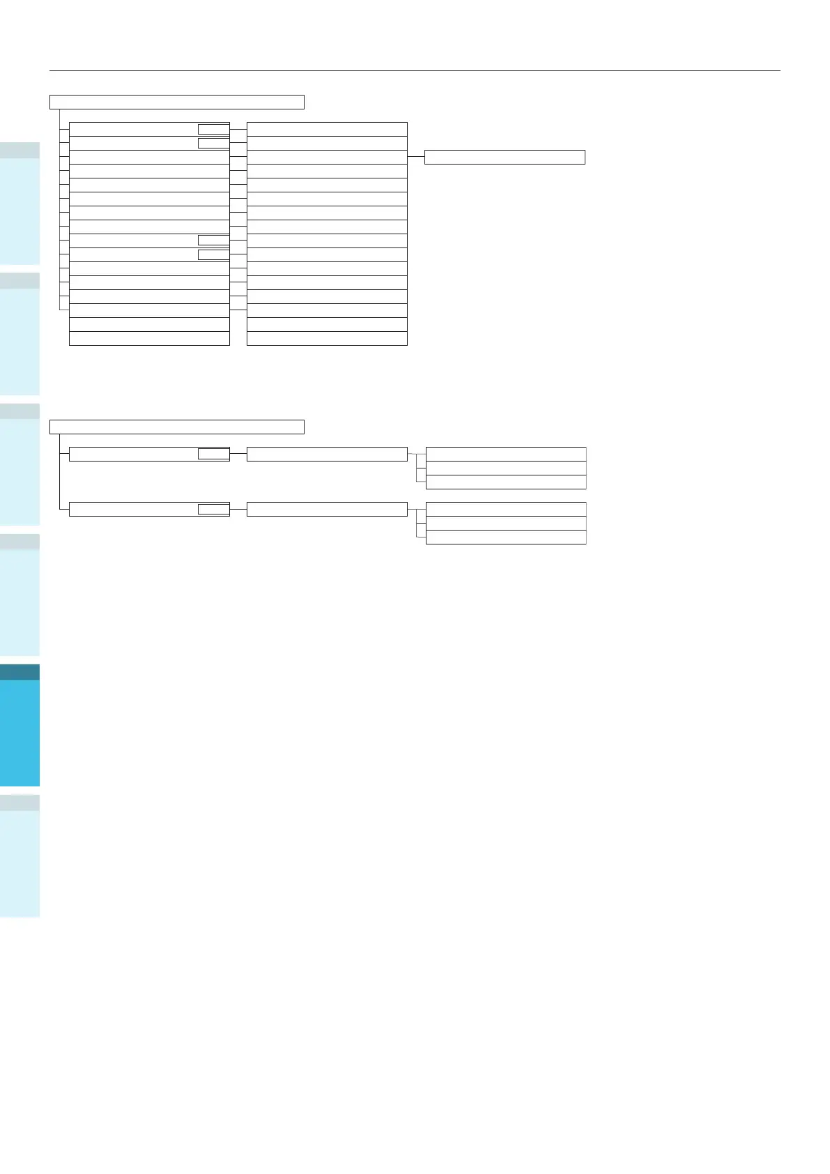 Table of control panel menu items
