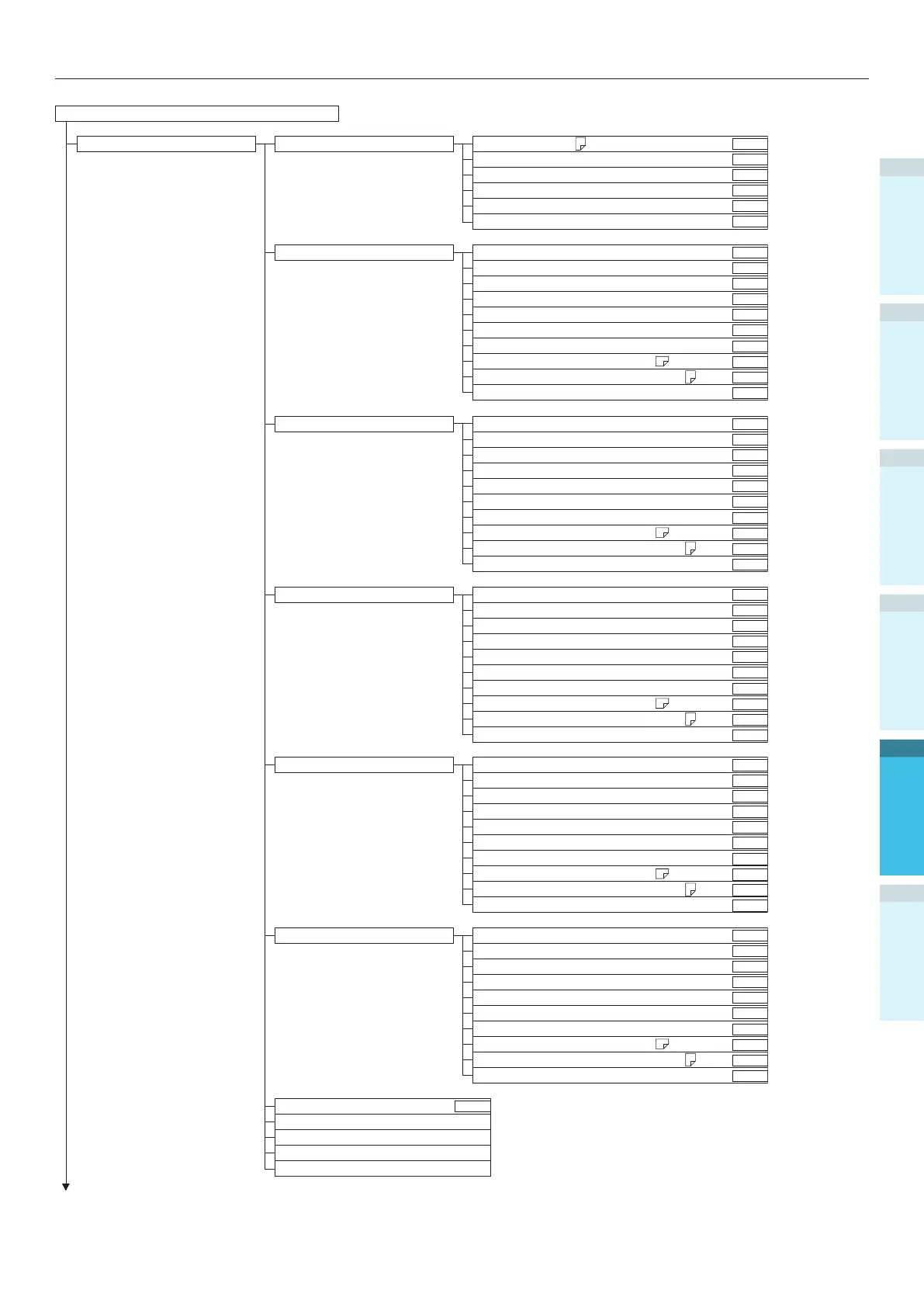 Table of control panel menu items