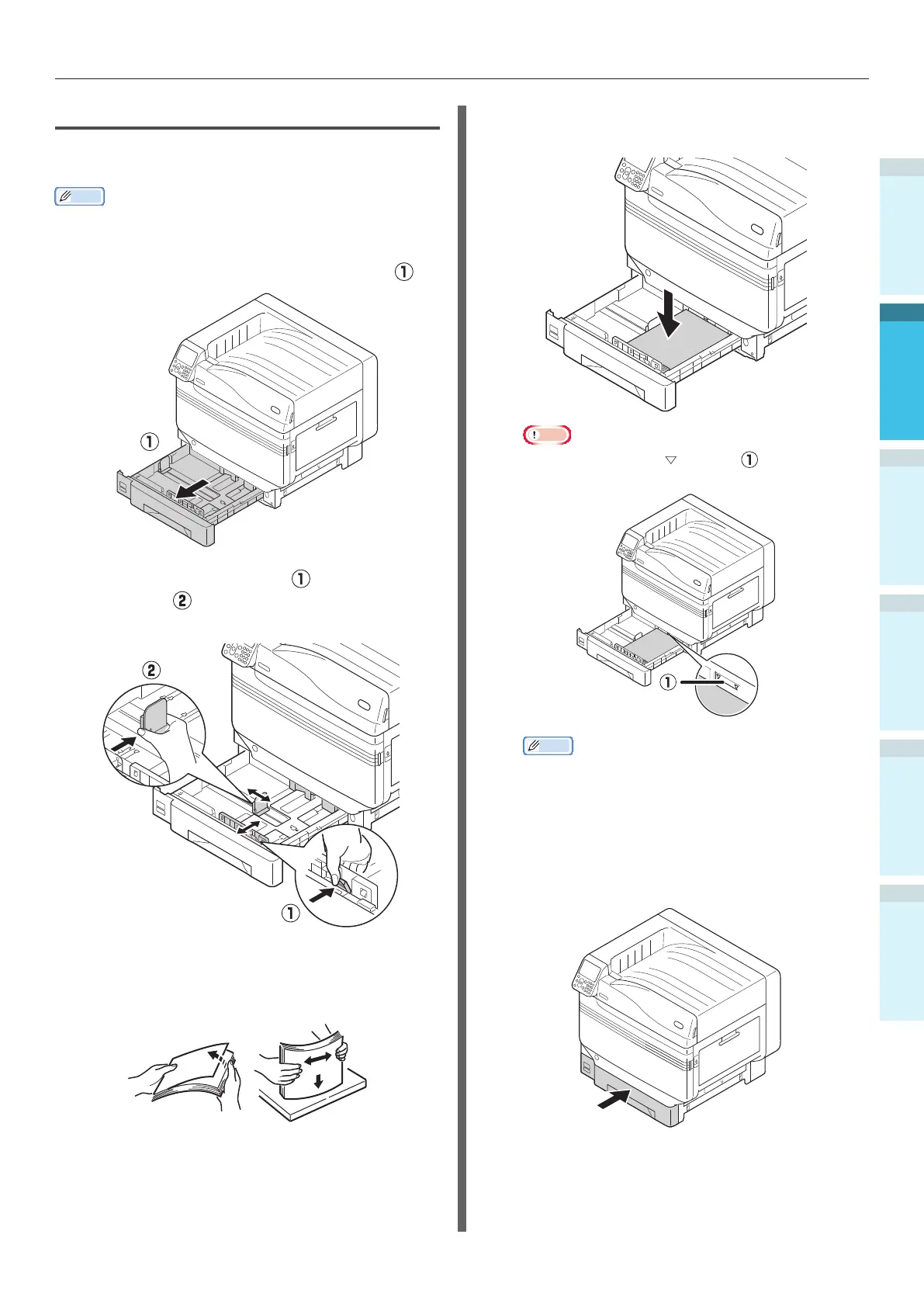 In this section, setting paper in tray 1 is used as an