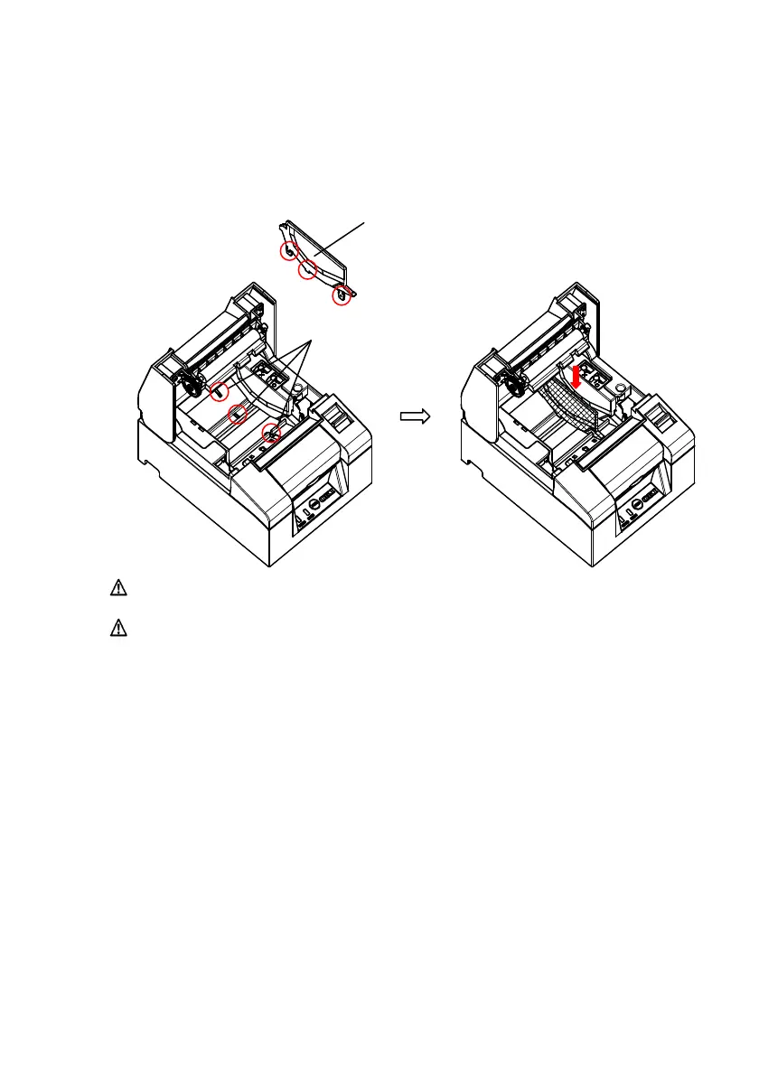 (1) Allineare le tre sporgenze del separatore per rotoli da 58 mm con i fori
